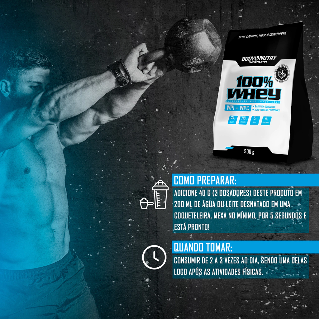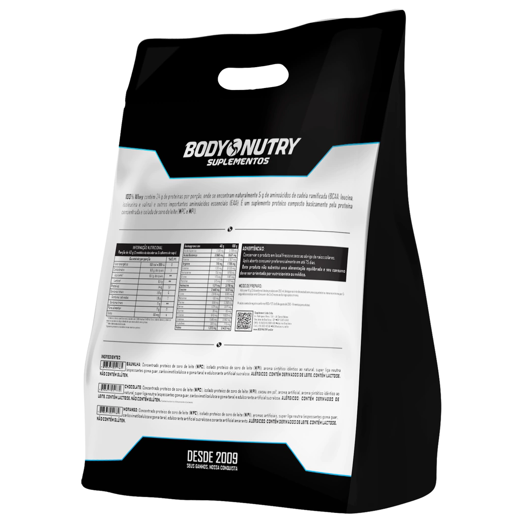 Adquira agora o 100% Whey da Body Nutry 1,8 kg — fórmula com WPI + WPC, 24 g de proteína por porção, 5 g de BCAA e 4 g de glutamina, com baixíssimo teor de gorduras e alta absorção para resultados rápidos.