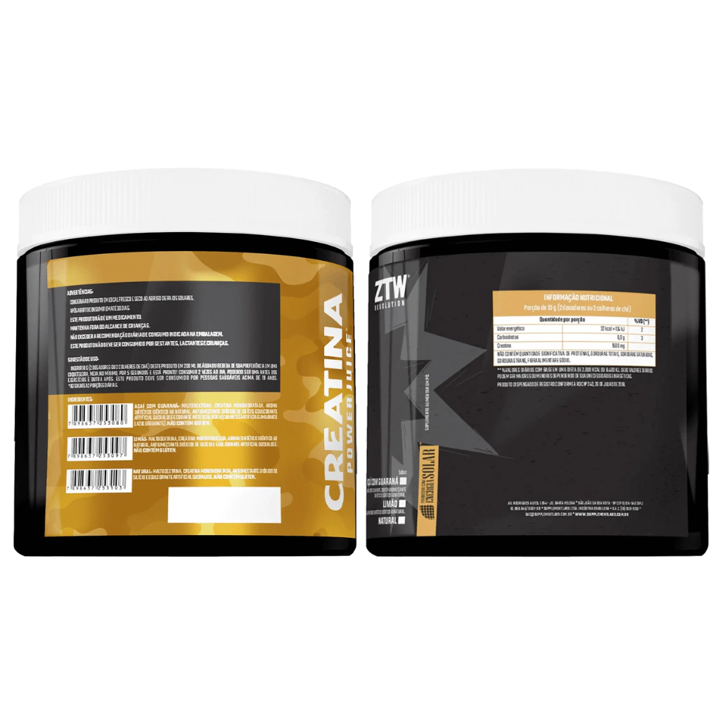 CREATINA POWER JUICEA Creatina Power Juice ZTW Revolution combina 3 g de creatina monohidratada com maltodextrina, ajudando no aumento de força, energia e recuperação muscular. Pode ser usada no pré, intra ou pós-treino, não contém glúten e é prática para o consumo diário. |