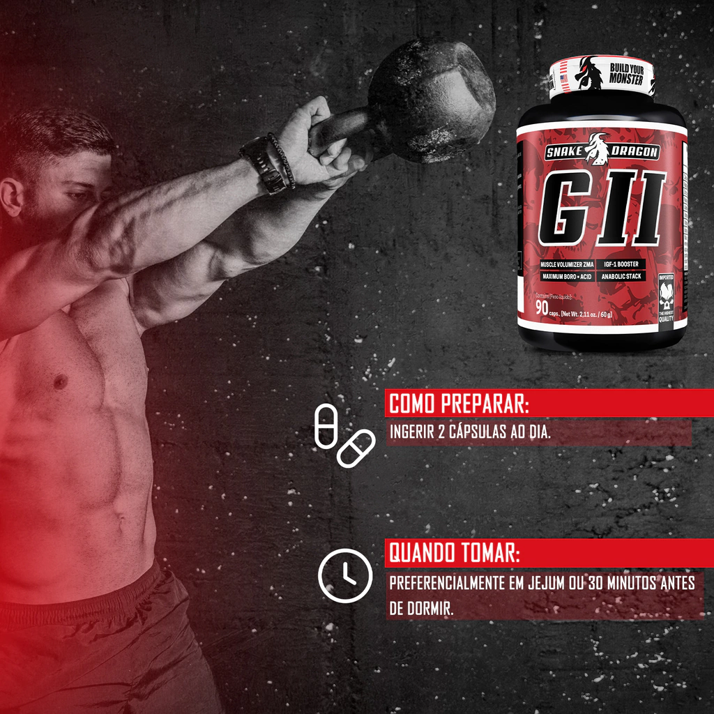 O GII da Snake Dragon é um suplemento em cápsulas com minerais e vitaminas que auxiliam no equilíbrio hormonal, recuperação muscular e fortalecimento do sistema imunológico, promovendo mais força, energia e desempenho.