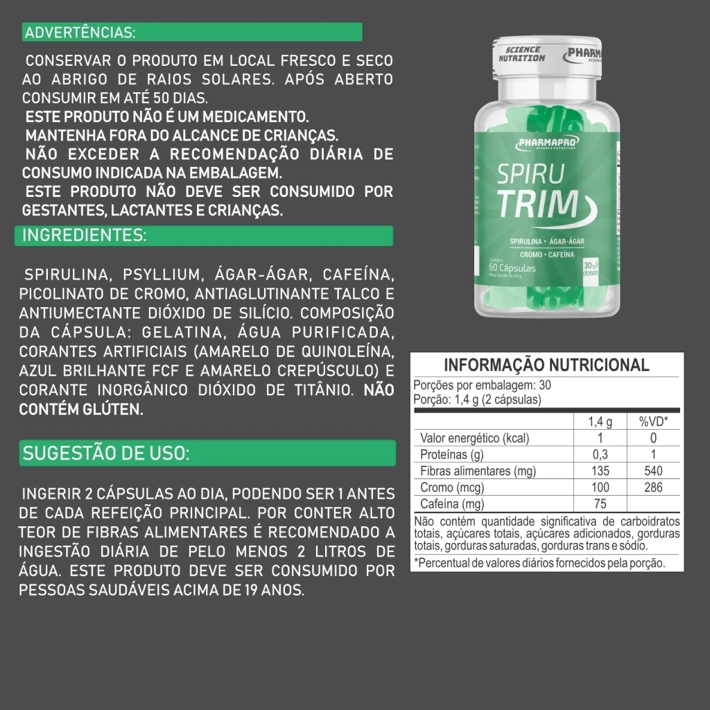 Suplemento com spirulina, psyllium, ágar-ágar, cromo e cafeína. Atua no controle do apetite, aumento da saciedade e suporte à energia e metabolismo. Perfeito para quem busca mais controle alimentar e disposição durante o dia.