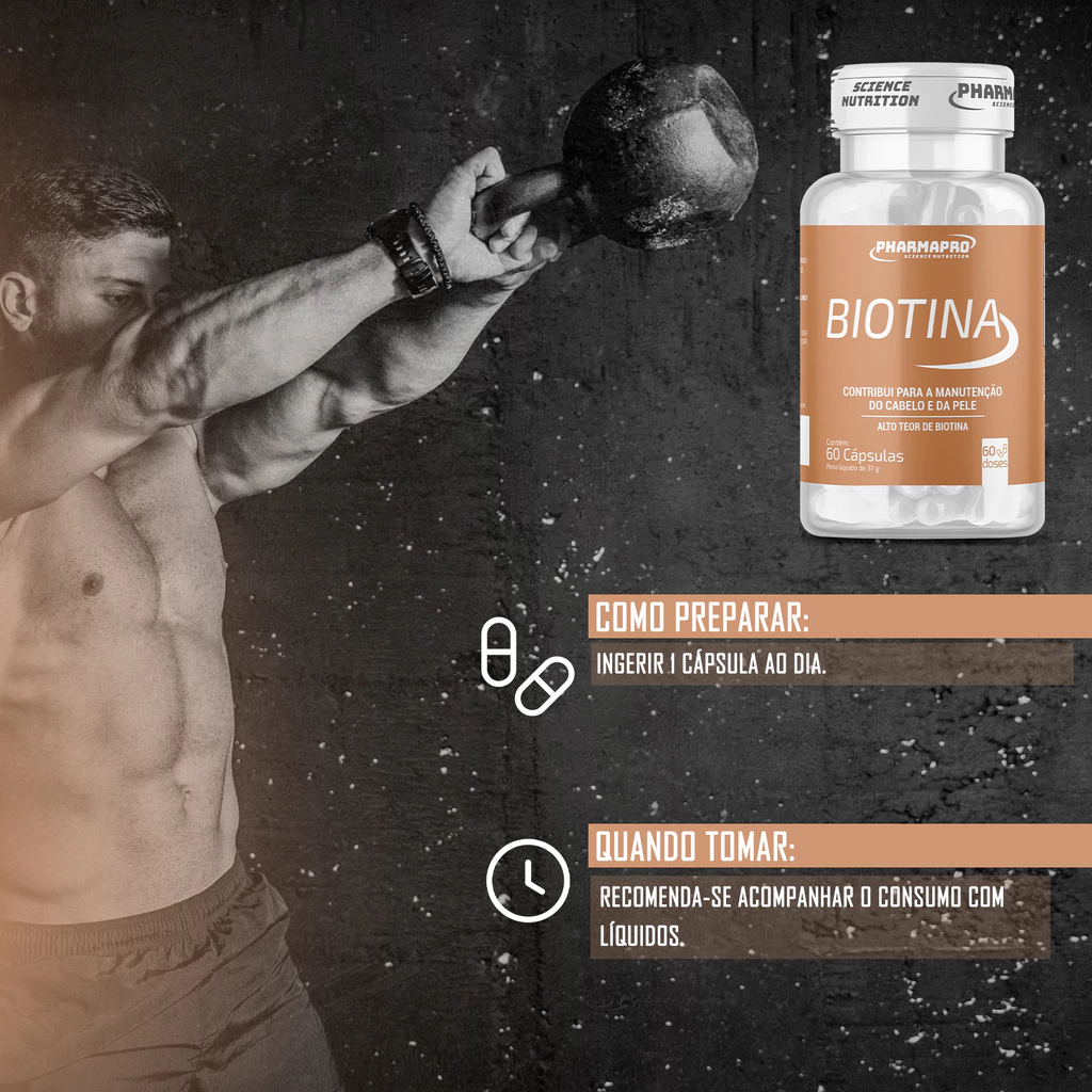 O Kit Triplo Biotina da Pharmapro é ideal para quem busca fortalecer os cabelos, melhorar a saúde da pele e contribuir com unhas mais resistentes. Com três frascos de 60 cápsulas cada, este suplemento possui alta concentração de biotina (vitamina H), sendo indicado para uso contínuo como parte de uma rotina de autocuidado.