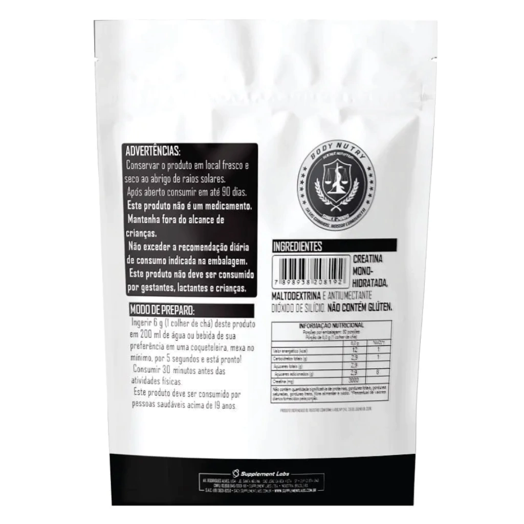 A Creatina Monohidratada Body Nutry é 100% pura, sem aditivos e de alta absorção. Proporciona aumento de força, resistência e potência muscular, ajudando no desempenho máximo dos treinos.