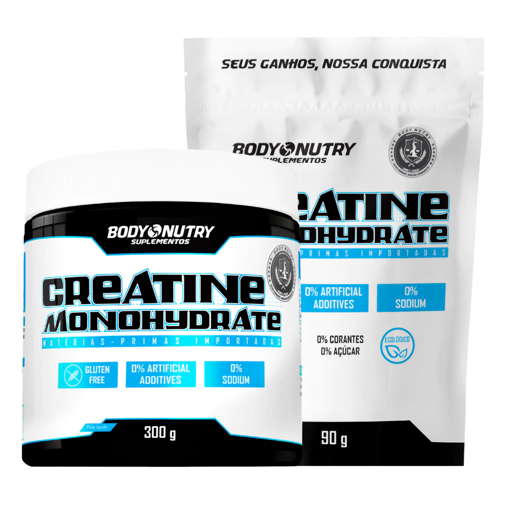 KIT CREATINA MONOHYDRATE POTE 300 G + CREATINA MONOHYDRATE REFIL 90 G BODY NUTRY: POTENCIALIZE SEUS TREINOS COM MAIS CREATINA
