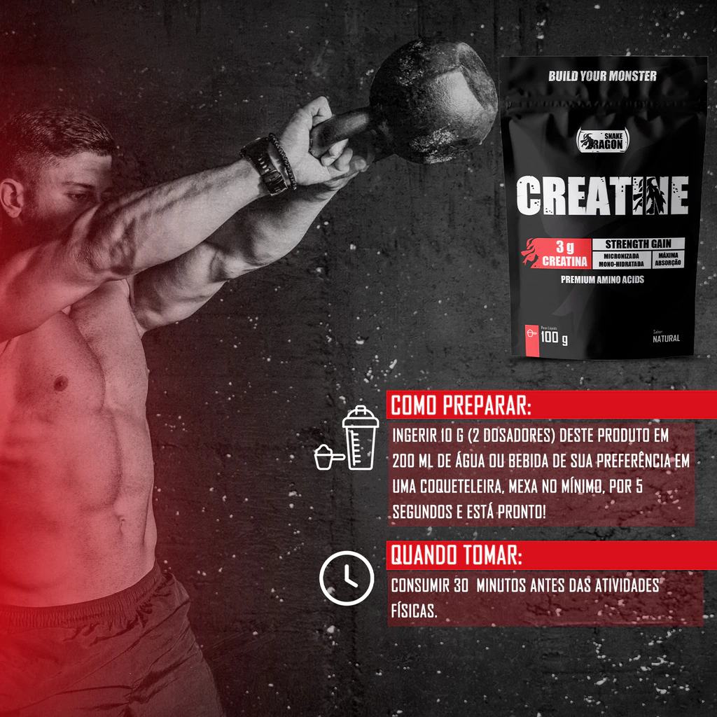 Creatine Snake 100g (2x): A Creatine Snake é uma creatina de alta qualidade, com duas embalagens de 100g. Ideal para aumentar a força e a massa muscular, além de melhorar a performance em atividades de alta intensidade.