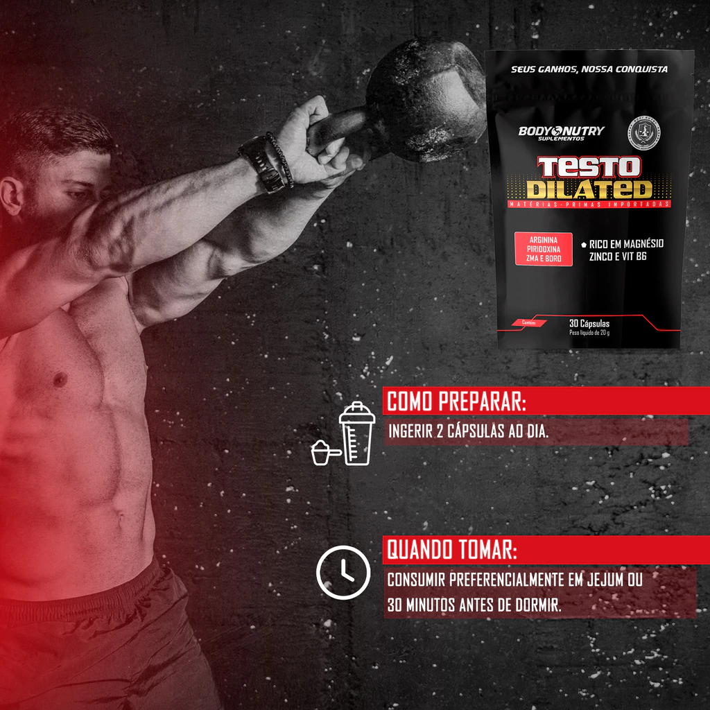 Testo Dilated 30 Cápsulas: Formulado com ingredientes essenciais como L-arginina, magnésio, zinco e vitamina B6, o Testo Dilated é um suplemento vasodilatador que auxilia na circulação sanguínea e no suporte à produção hormonal. Ideal para quem busca maximizar a entrega de nutrientes durante os treinos, garantindo melhores resultados e recuperação eficiente.