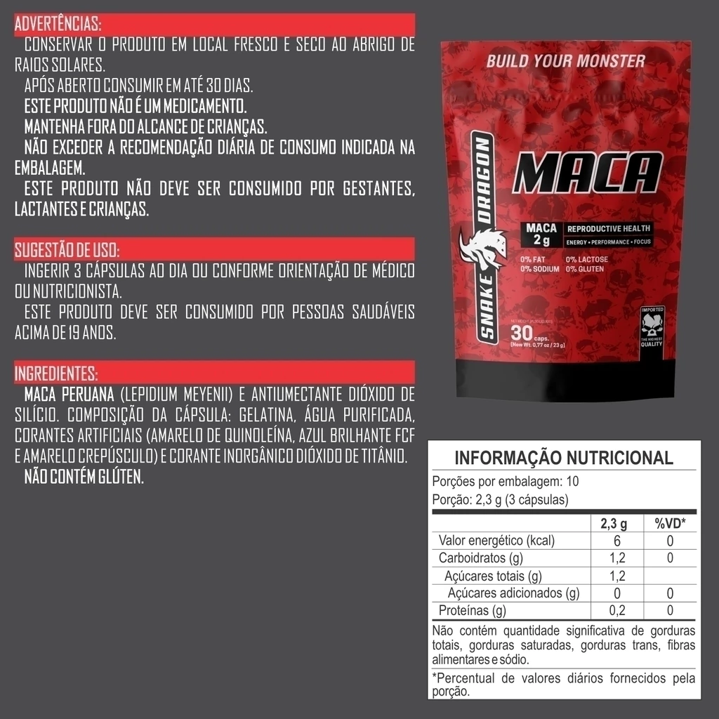 Refil Maca Snake 30 Cápsulas: Com a mesma formulação de alta qualidade, o refil é perfeito para manter o seu estoque e garantir a continuidade dos benefícios da maca peruana. Com embalagem prática e econômica, o refil é ideal para reposição, mantendo a mesma eficácia e pureza.