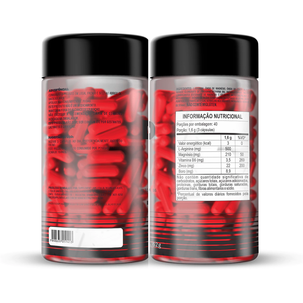 É um suplemento alimentar em cápsulas com ZMA, Arginina e Boro, formulado para quem busca energia, desempenho e força muscular.